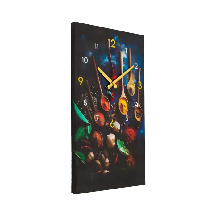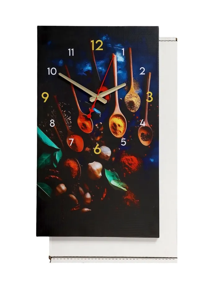 Размер часов: 35 × 60 см. Толщина 2.5 см, толщина со стрелками 4 см. Часы выполнены на холсте, который не выцветает на солнце, не деформируется под влиянием повышенной влажности или перепадов температуры. Подрамник выполнен из МДФ - крепкого, экологически чистого материала. Качество сборки препятствует провисанию полотна со временем. Упакованы в картонную коробку. Используется HD печать для высокой детализации изображения. У часов простая система креплений. Часы идут без стекла, с открытой стрелкой. Механизм бесшумный, батарейка формата АА в комплект не входит. Тип индикации - арабские цифры, что делает время на часах четко видимым и легко читаемым.