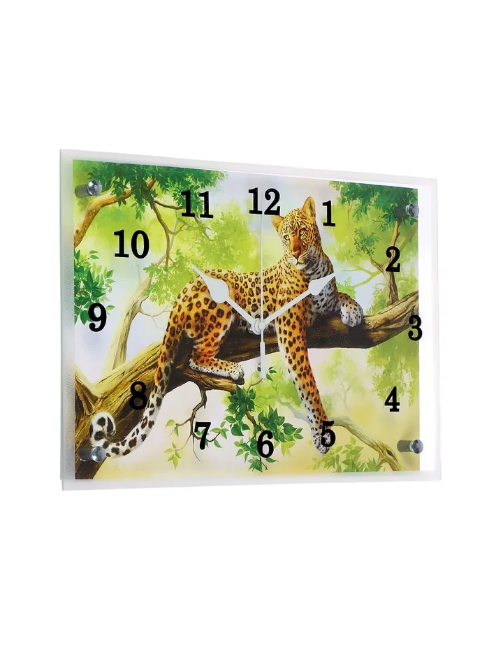 Часы-картина настенные, интерьерные "Леопард на ветке", бесшумные, 25 х 35 см — Характеристики