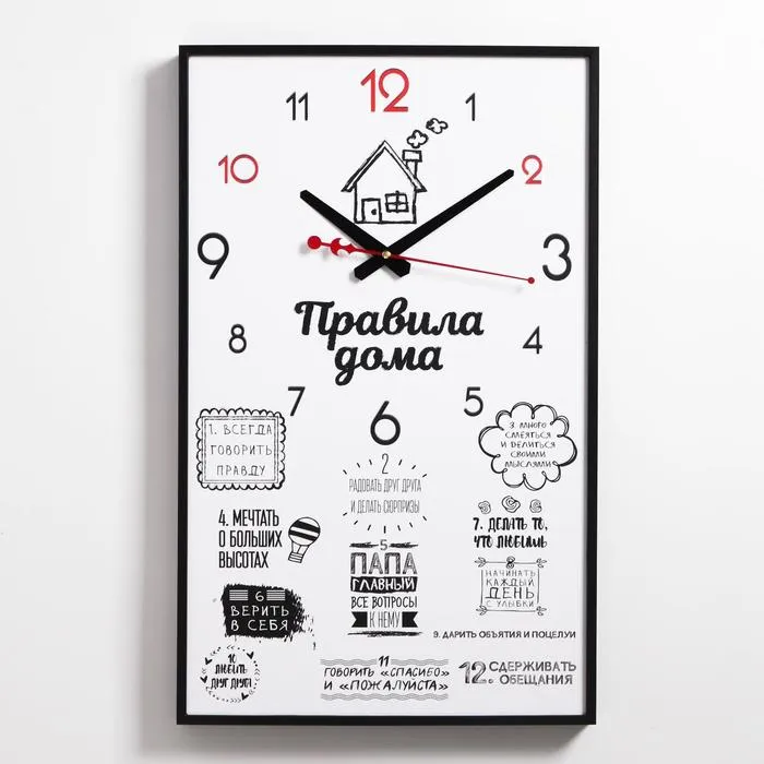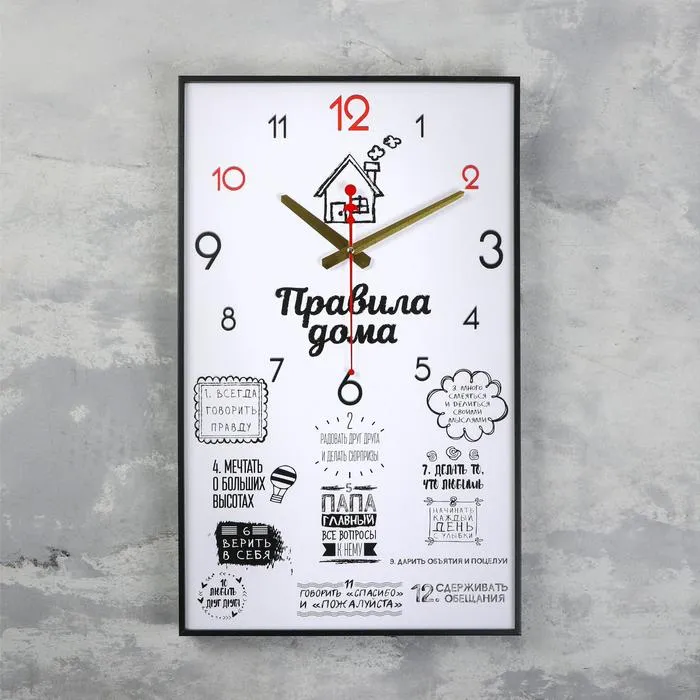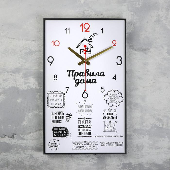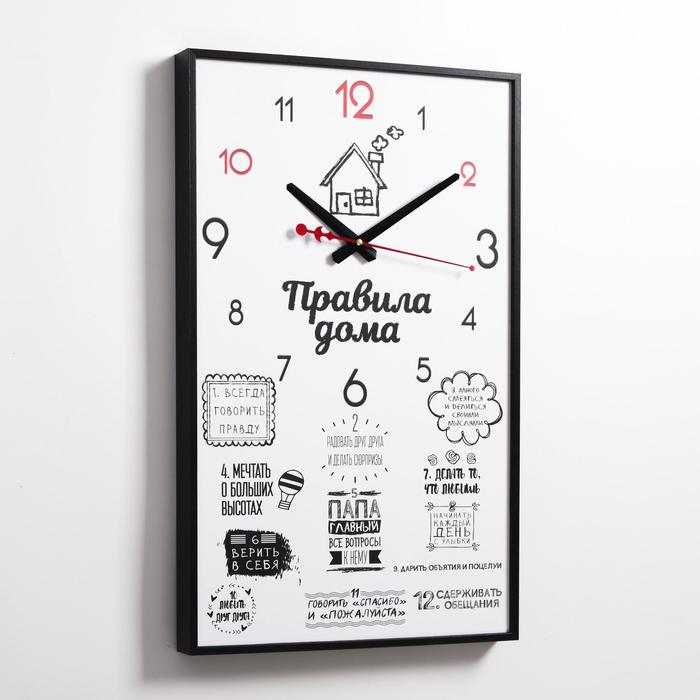 Часы-картина настенные, интерьерные "Правила дома", плавный ход, 57 х 35 х 4 см — Характеристики