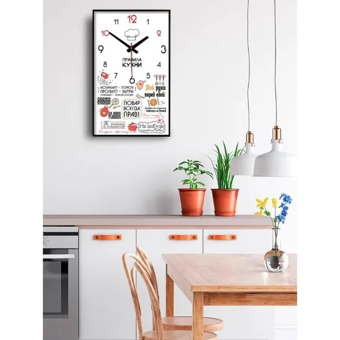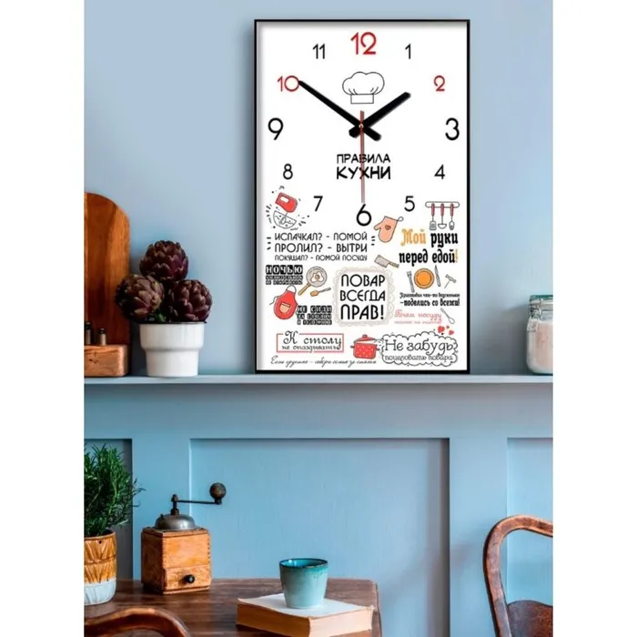 Часы-картина настенные, интерьерные "Правила кухни", плавный ход, 57 х 35 х 4 см — Характеристики