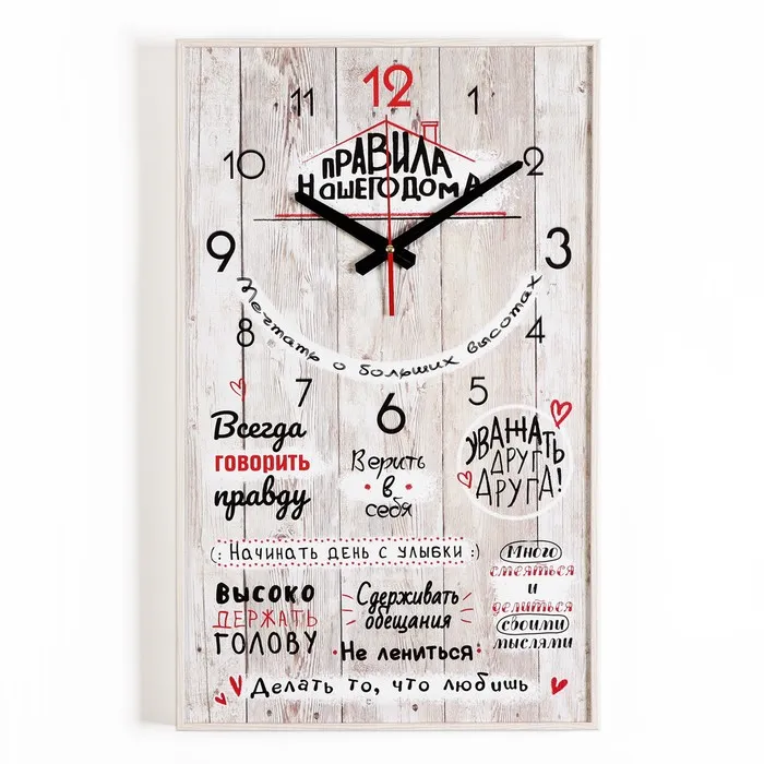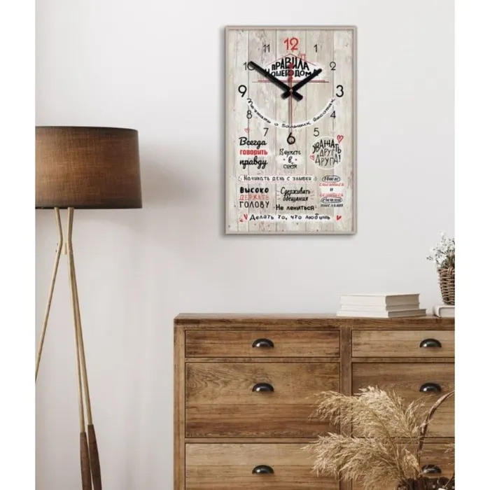 Часы-картина настенные, интерьерные "Правила нашего дома", плавный ход, 1АА, 57 х 35 х 4 см — Характеристики