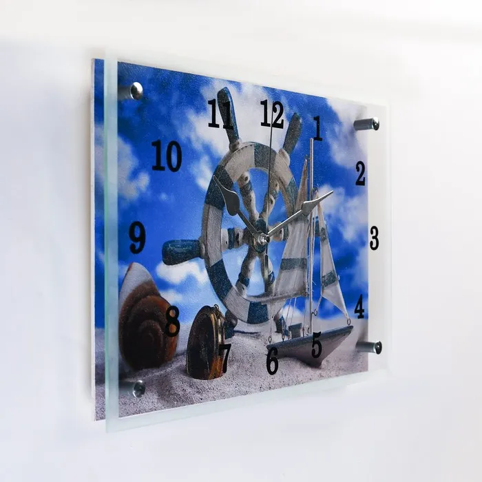 Часы-картина настенные, интерьерные "Штурвал и яхта на песке", бесшумные, 25 х 35 см — Характеристики