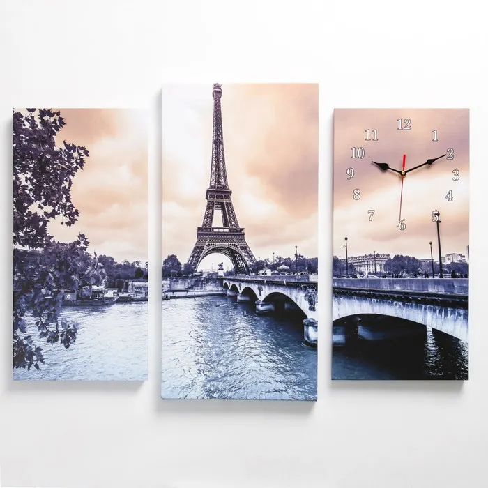Стильные бесшумные часы-картина удачно оформят любой интерьер от современного до классического. Модульная картина с часами оснащена кварцевым часовым механизмом с тихим ходом. Этот триптих идеально подойдет для кухни, а также спальни и гостиной, кабинета, офиса, прихожей, пригодится в квартире, дома, на даче.