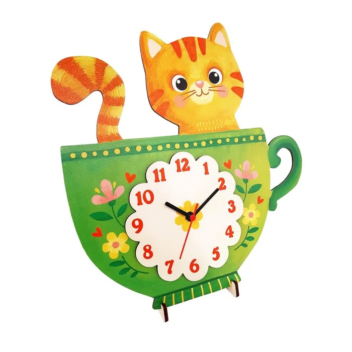 «Кот в чашке» помогает ребёнку освоить важные навыки: узнавать цифры и ориентироваться во времени. Играя с элементами часов, малыш учится различать числа, запоминать последовательность времени и развивать внимание. Это не только красивое дополнение интерьера, но и источник новых знаний, которые формируют базовые навыки восприятия времени и порядка. Каждый взгляд на часы становится маленьким шагом к самостоятельности и уверенности.