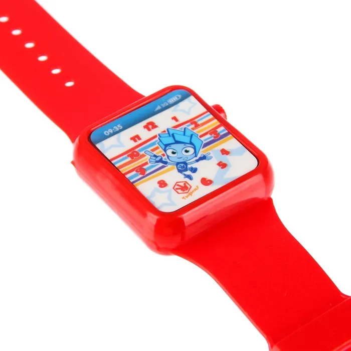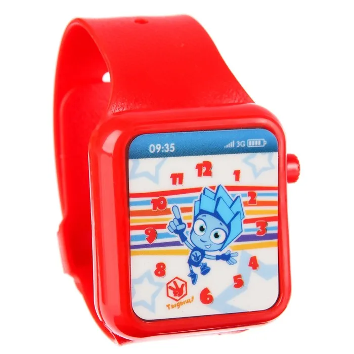 - Красный пластиковый корпус с изображением Фиксиков привлекает внимание. Игрушка выглядит ярко и современно, подходит как мальчикам, так и девочкам.