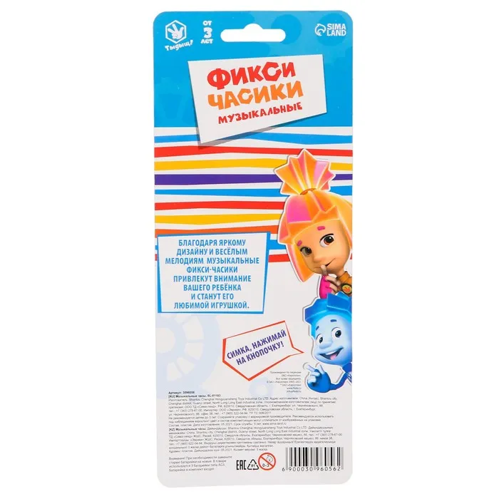 Часы музыкальные «Фикси-часики», звук, работает от батареек, Фиксики — Характеристики
