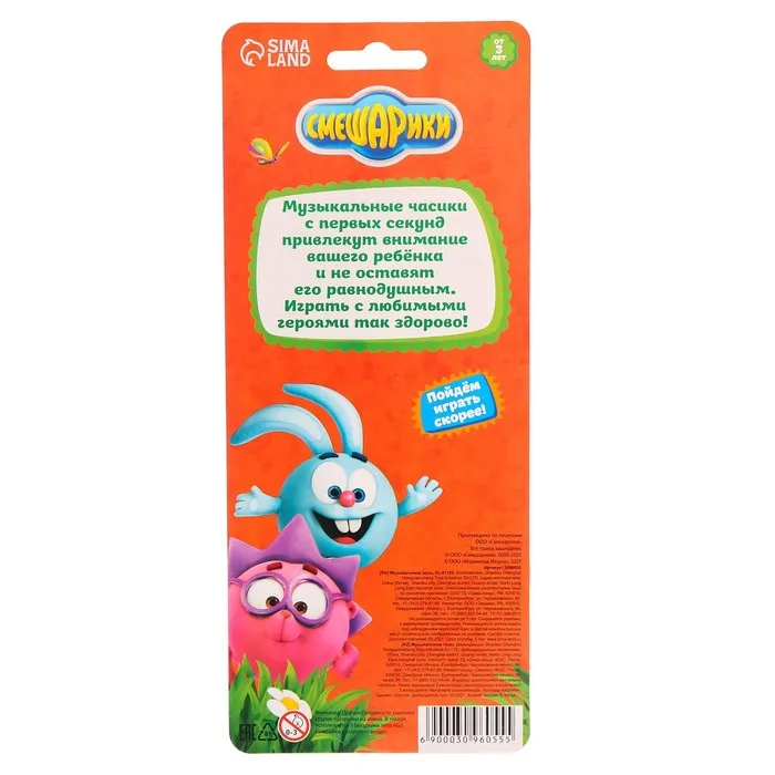 Часы музыкальные «Весёлые часики», звук, работает от батареек, Смешарики — Характеристики