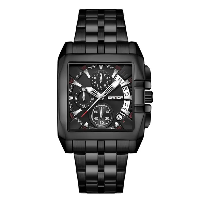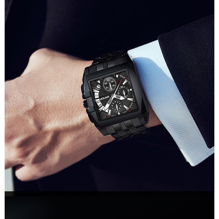 Часы наручные, d=4.5 см, длина ремешка l=27 см, календарь, хронограф, водонепроницаемые, светящиеся, черные — Характеристики