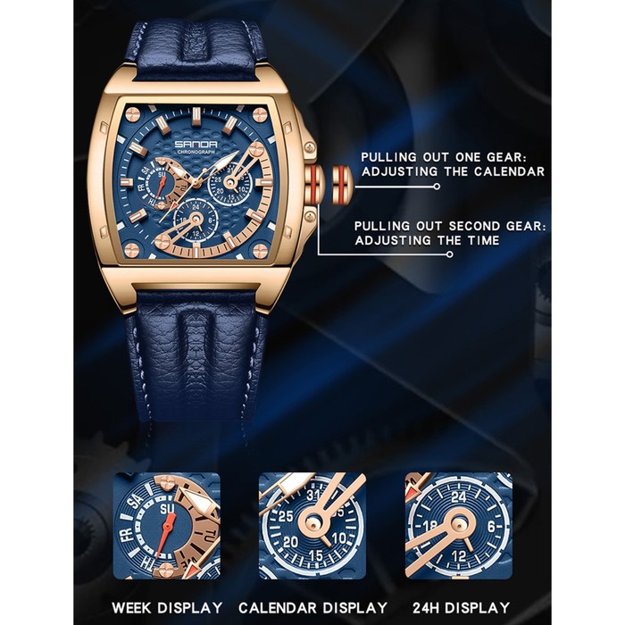 Часы наручные, d=4.8 см, длина ремешка l=26.7 см, хронограф, светящиеся, водонепроницаемые, ремешок кожа — Характеристики