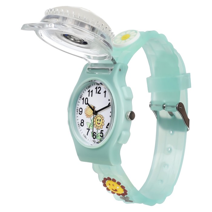 Часы наручные детские, "Подсолнух", d-3,5 см, ремешок силикон l-21,5 см, с подсветкой — Характеристики