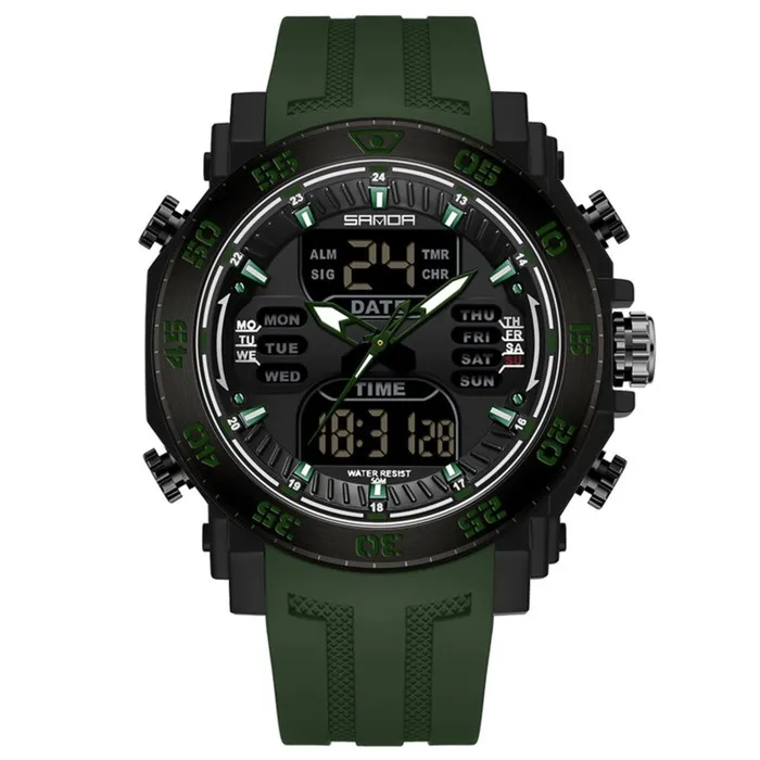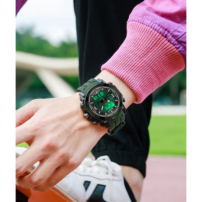 Часы наручные электронные, d-5.3, будильник, календарь подсвтека, ремешок силикон, зеленые 985523 — Характеристики