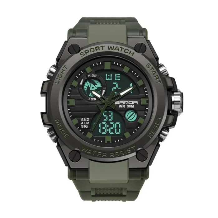 Часы наручные электронные, d-5.3см, будильник, календарь, подсветка, ремешок силикон,зеленые 98552 — Характеристики