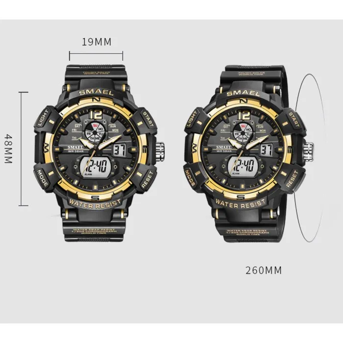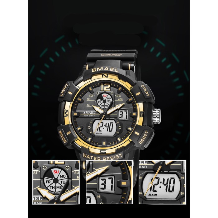 Часы наручные электронные, с будильником, d-5.3 см, ремешок l-26 см, 5 ATM, черные — Характеристики