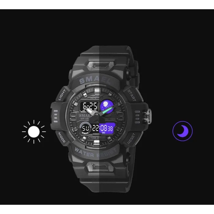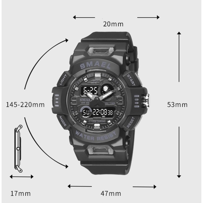 Часы наручные электронные, с будильником, d-5.3 см, ремешок l-27 см, 5 ATM, черные — Характеристики