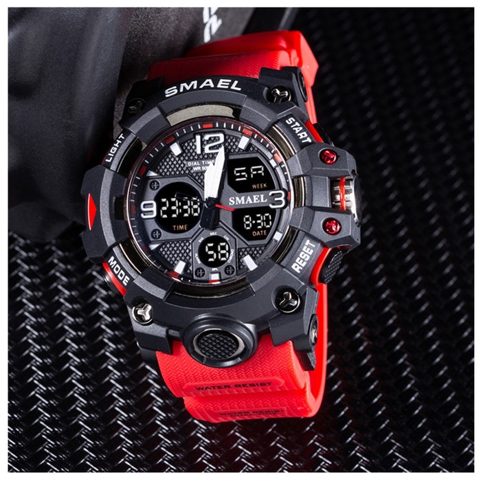 Часы наручные электронные, с будильником, d-5.6 см, ремешок l-26 см, 5 ATM, красный ремешок 974230 — Характеристики