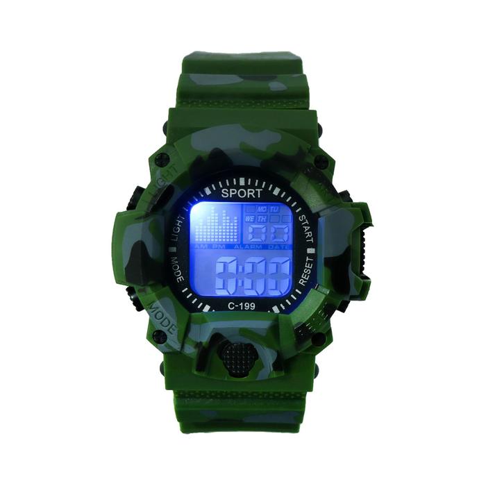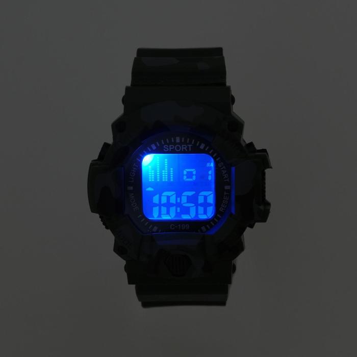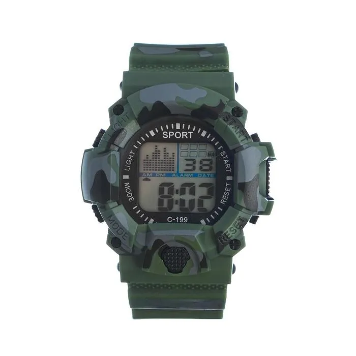 Часы наручные электронные SPORT, d-5 см, ремешок силикон 24.5 см, хаки — Характеристики