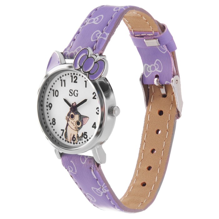 Яркие детские наручные часы - модный аксессуар для девочек с важным функциональным предназначением. Благодаря наличию такого типа часов ребенок научится распознавать время и планировать свои дела. Циферблат с котиком однозначно заинтересует любую девочку.