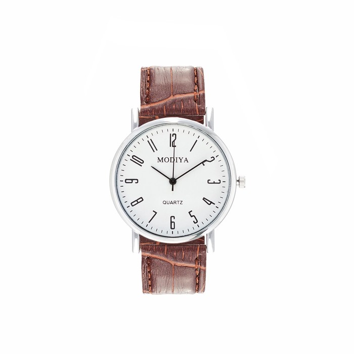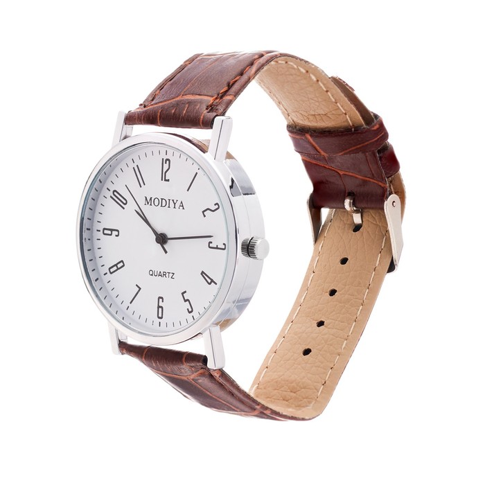 Часы наручные кварцевые мужские, d=4 см, длина ремешка l=23.5 см, белый циферблат, коричневый ремешок — Характеристики