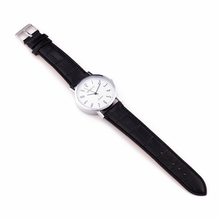 Часы наручные кварцевые мужские, d=4 см, длина ремешка l=23.5 см, белый циферблат — Характеристики