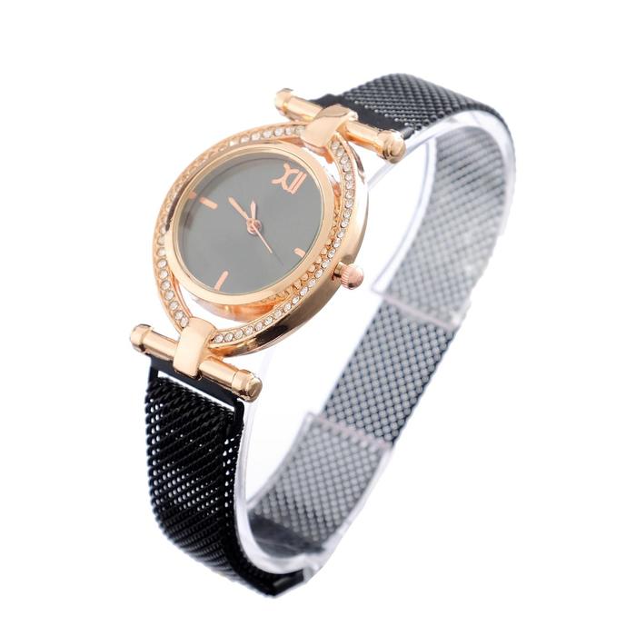 Часы наручные кварцевые женские "Пэрис", d-2.5 см, черные