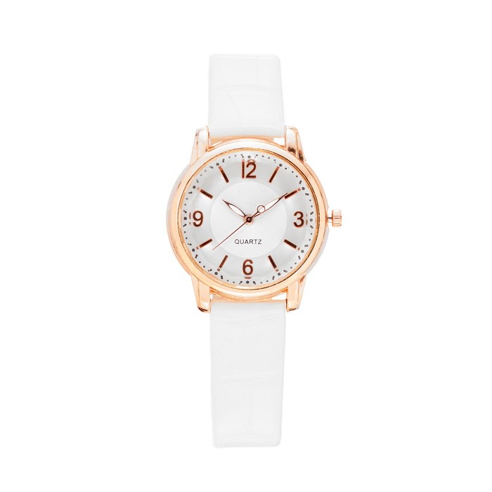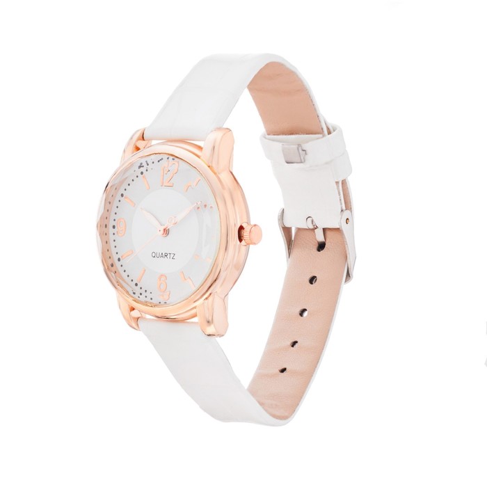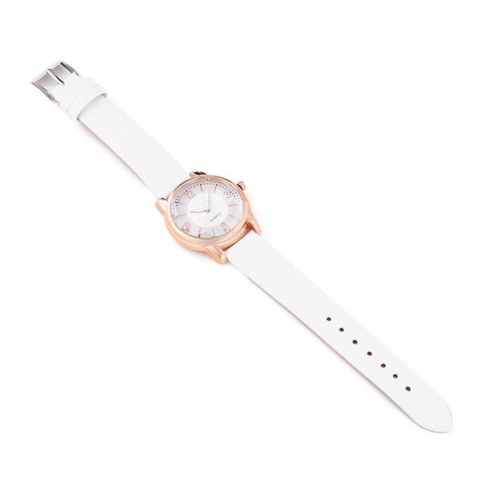 Часы наручные кварцевые женские, циферблат d=3.4 см, длина l=24 см, белый ремешок — Характеристики