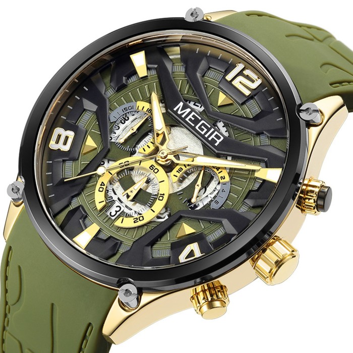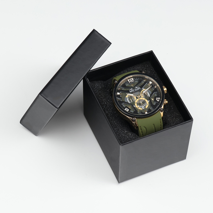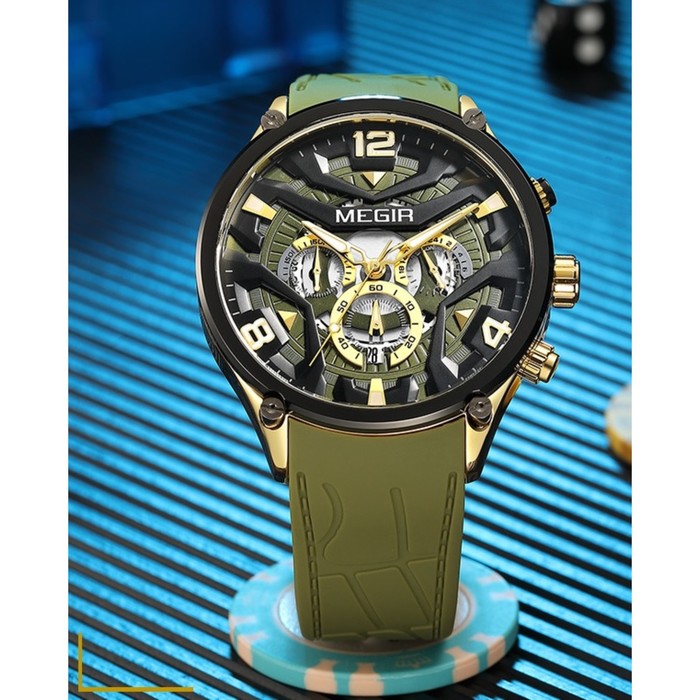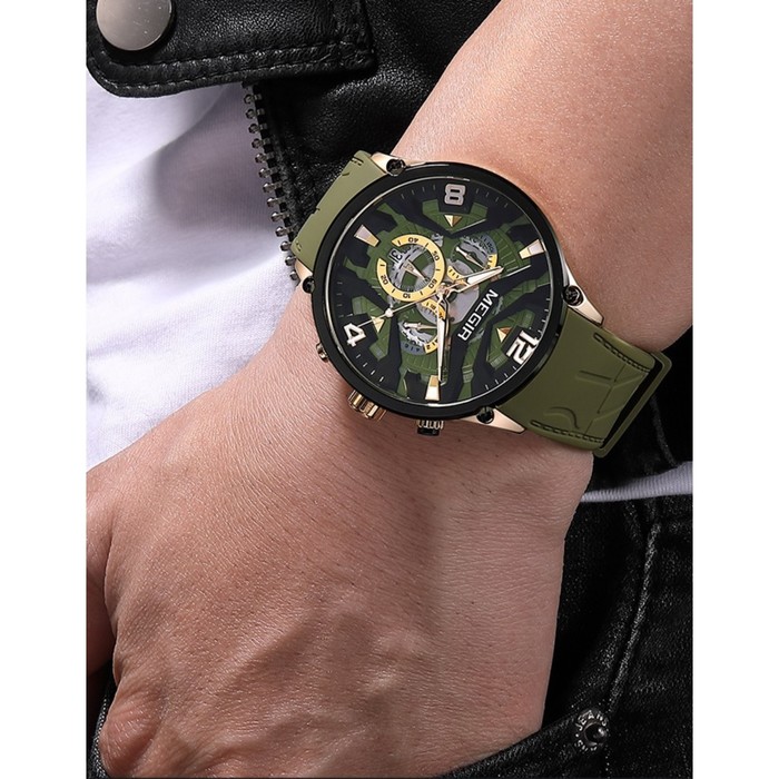 Часы наручные мужские, d=4.6 см, длина l=20 см, с хронографом, 3 АТМ, светящиеся, зелёные — Характеристики