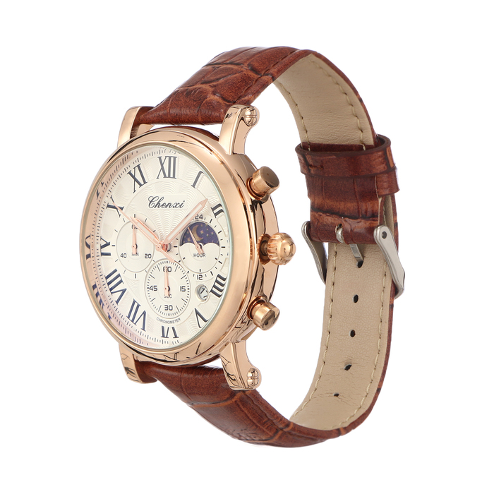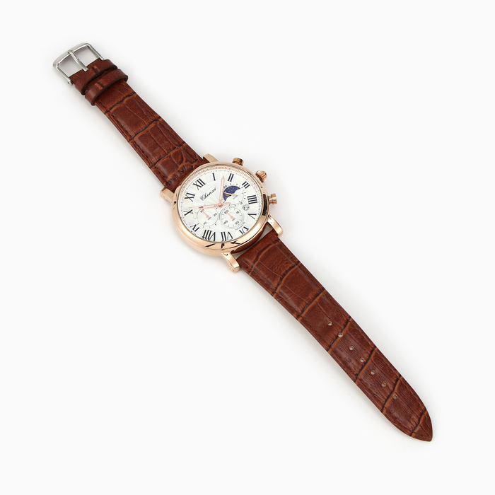 Часы наручные мужские, с календарем, хронографом, d-4.4 см, ремешок l-24 см, коричневый — Характеристики