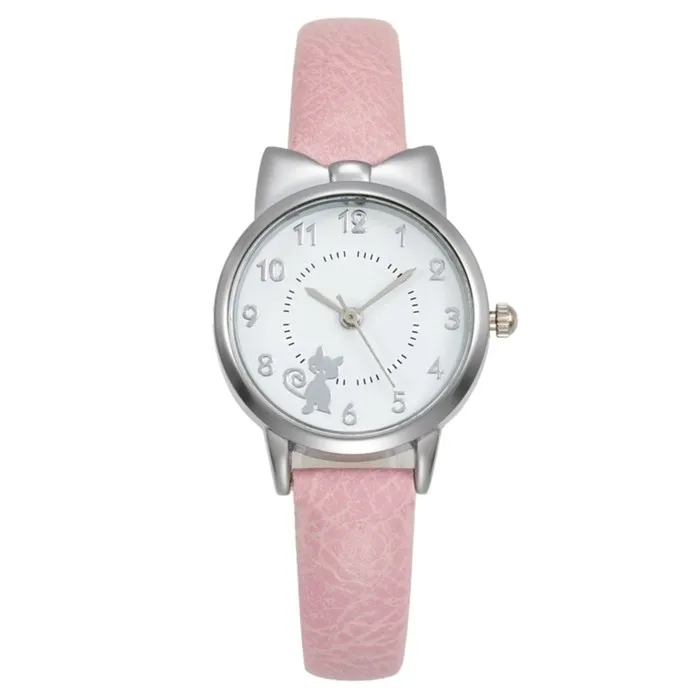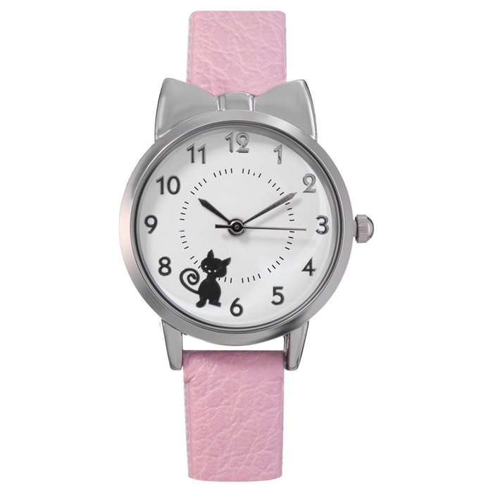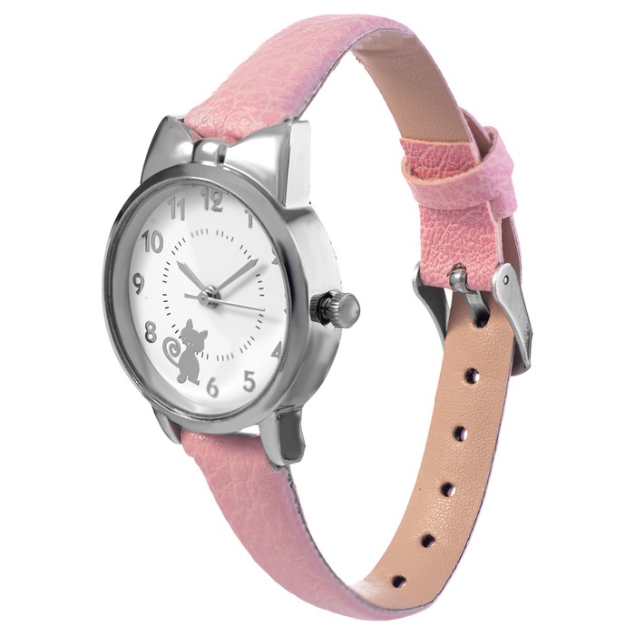 Часы наручные женские "Котик", d-2.8 см, розовый ремешок — Характеристики