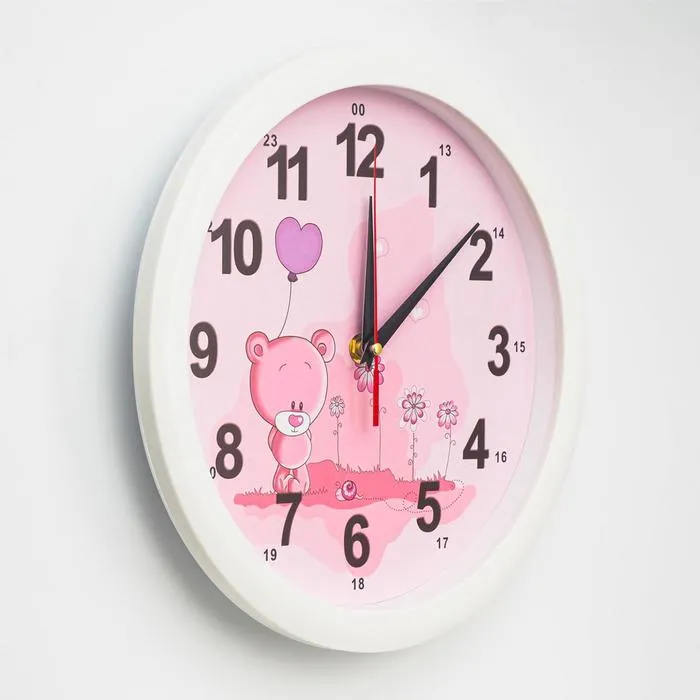 Часы настенные, d-28 см, детские, "Мишка с шариком", бесшумные