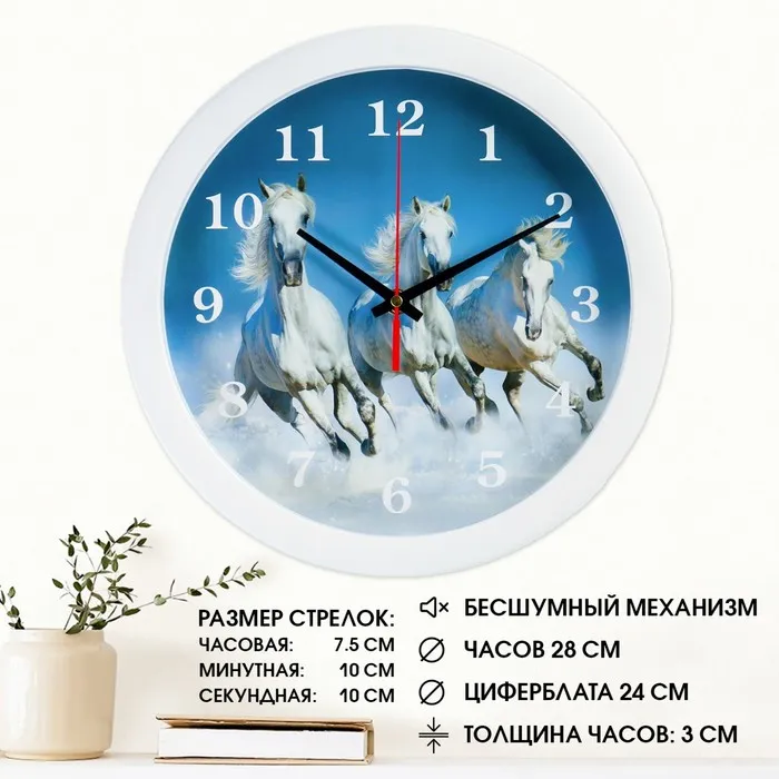 Часы настенные, d=28 см, интерьерные «Тройка лошадей», бесшумные — Характеристики