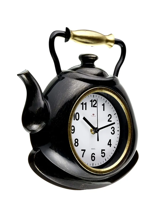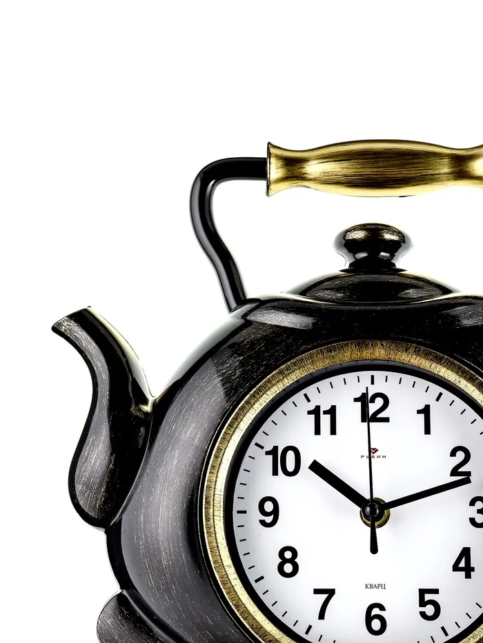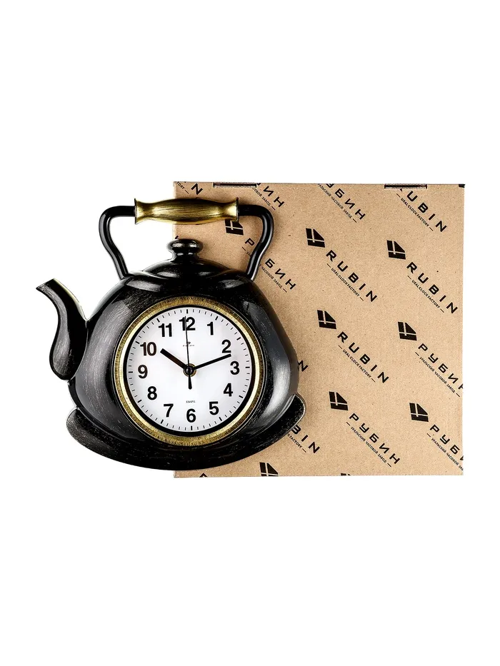 Часы настенные для кухни "Классика. Чайник", бесшумные, 27 х 28,5 см, черные с золотом — Характеристики