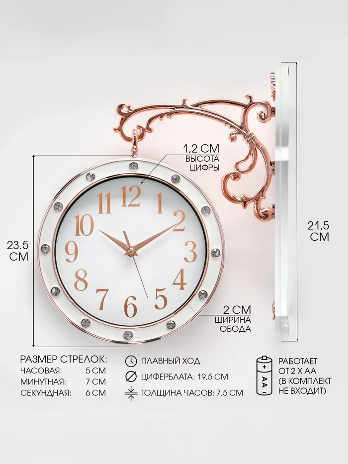 Часы настенные двусторонние, на подвесе, плавный ход, 36 х 32 см, d-25 см, циферблат 19 см — Характеристики