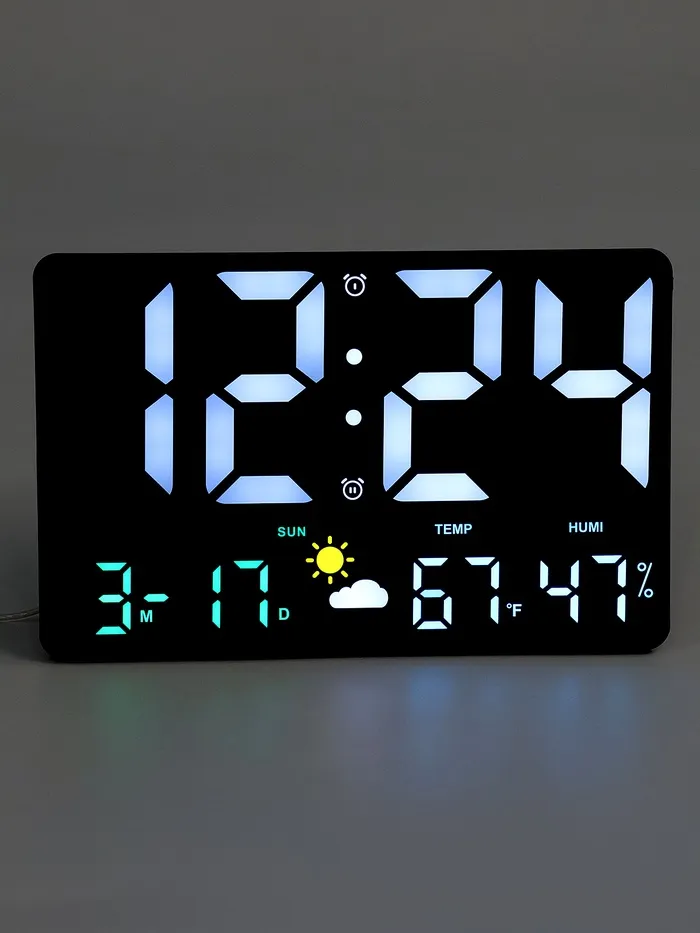 Выбор этих настенных электронных часов — это решение для тех, кто ценит функциональность и стиль. Они не только украсят ваш интерьер, но и станут полезным помощником в повседневной жизни. С такими часами вы всегда будете в курсе времени, температуры, влажности и погодных условий, что сделает ваш день более организованным и комфортным.