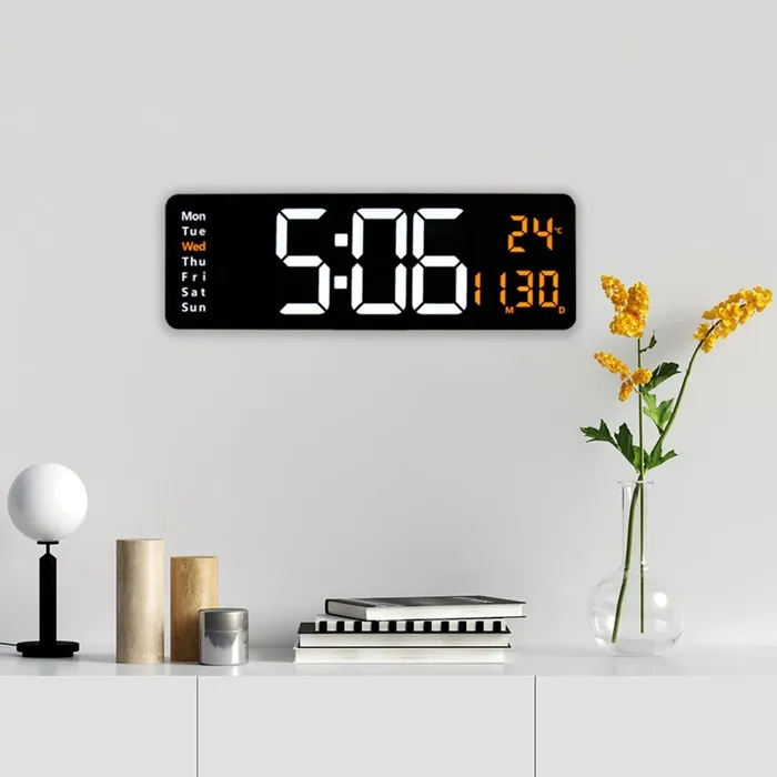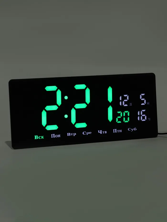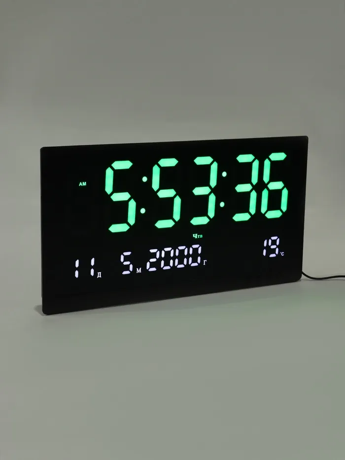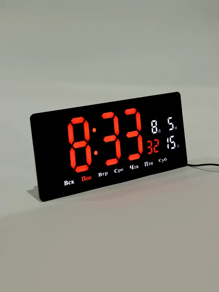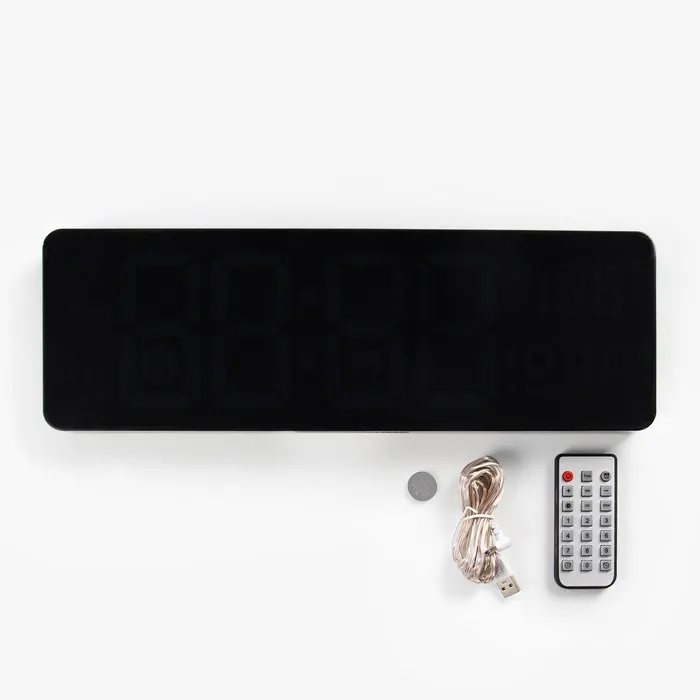 Часы настенные электронные, настольные, будильник, календарь, термометр, 39 x 13 см, белые цифры 3 х — Характеристики