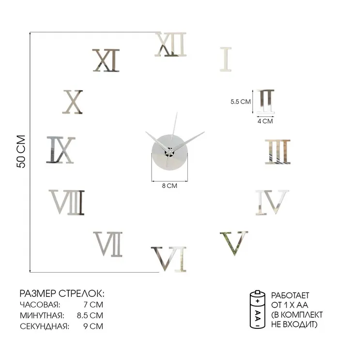 • Создавайте часы в собственном стиле, проявляйте изобретательность и креативность. Не обязательно располагать числа по кругу — придайте аксессуару необычную форму, поменяйте диаметр циферблата, используйте не все элементы. Комплектующие легко клеятся на стену и без труда снимаются.