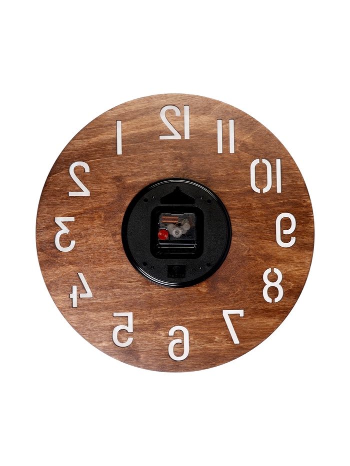 Кварцевый механизм гарантирует точность, а крупные арабские цифры обеспечивают лёгкое считывание времени даже с расстояния. Деревянная текстура и безупречная отделка подчеркивают эстетику ручной работы и создают ощущение уюта и гармонии.