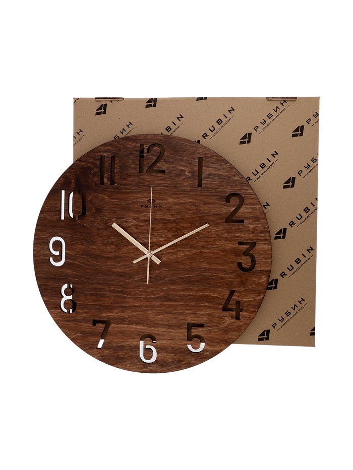 Часы настенные, интерьерные, бесшумные, плавный ход, d=40 см, дерево, коричневые — Характеристики