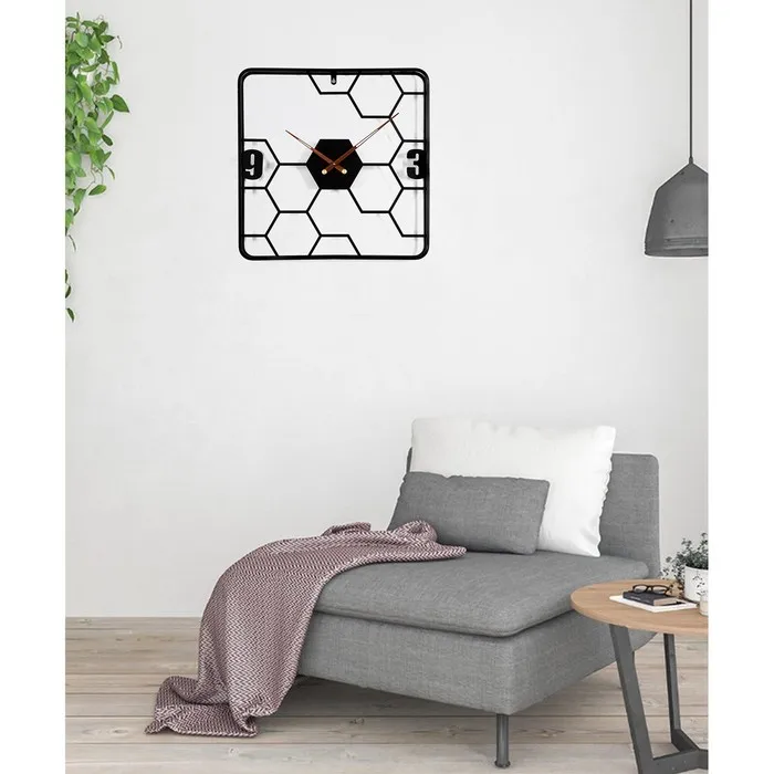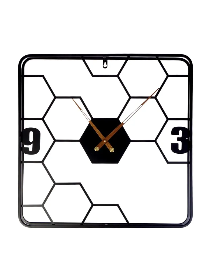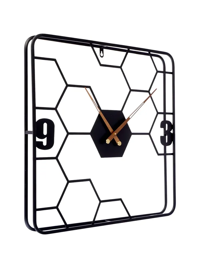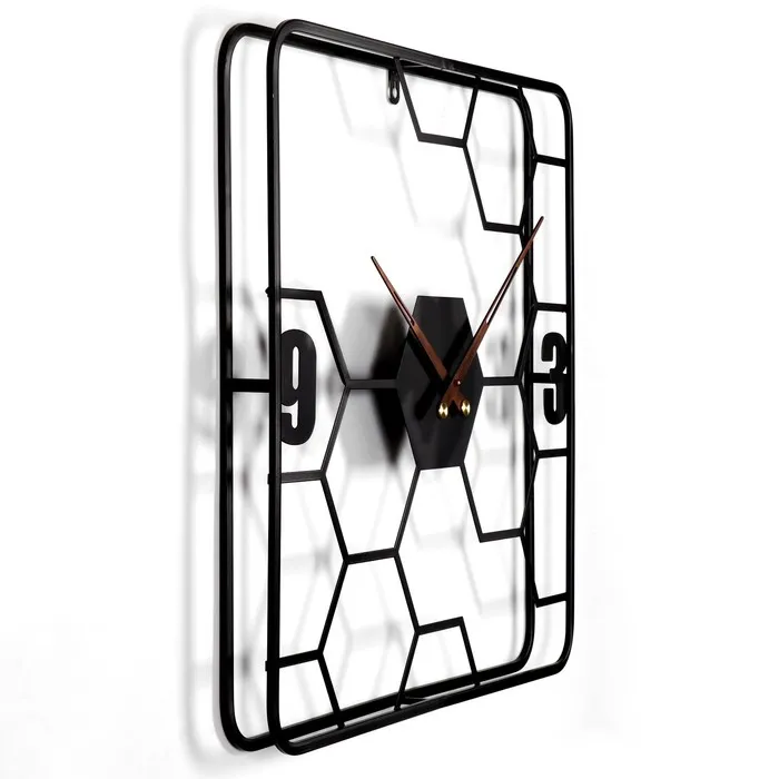 Часы настенные интерьерные большие, Лофт, «Соты», плавный ход, 58×58 см, чёрные — Характеристики