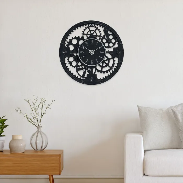 Часы настенные интерьерные большие "Механизм", дискретный ход, d-45 см, чёрные — Характеристики