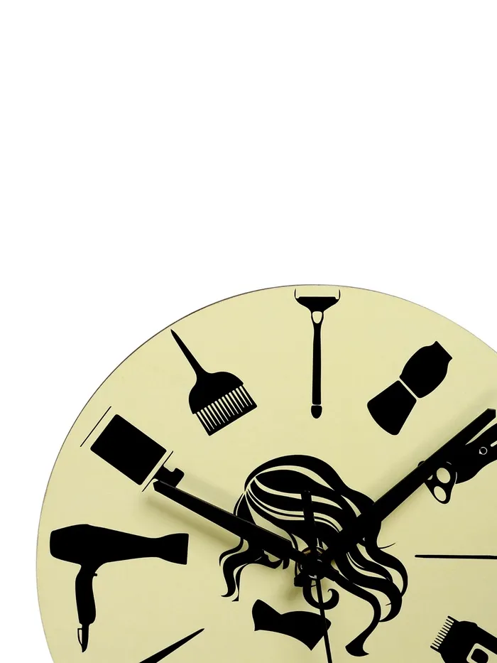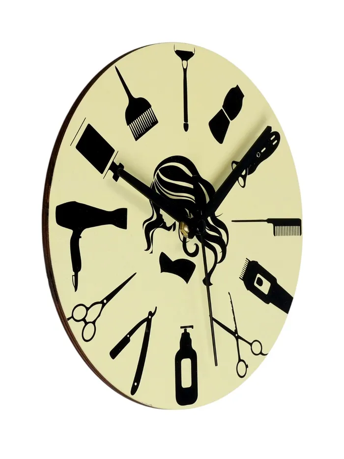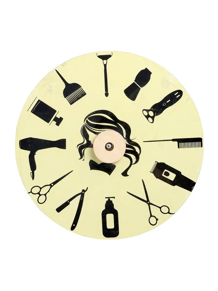 Оригинальный и стильный дизайн. Настенные часы можно использовать в качестве подарка вашему любимому парикмахеру на профессиональный праздник, день рождения или любой другой подходящий праздник.