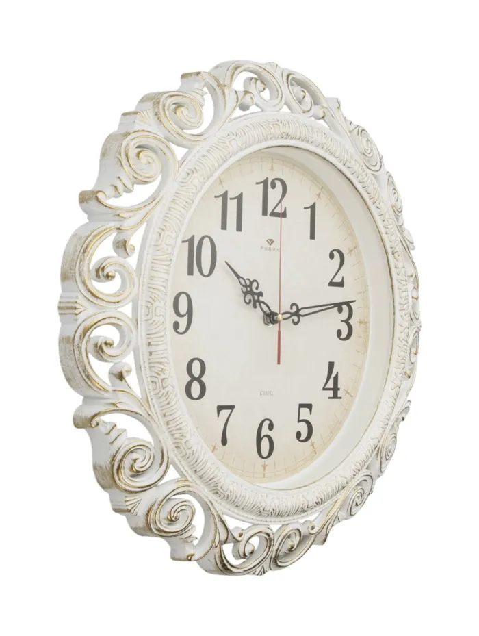 Диаметр корпуса составляет 40,5 см, что позволяет легко читать время со значительного расстояния. Их корпус украшен ажурным узором, который придает часам оригинальный и изысканный вид. Однако, самым важным преимуществом этих интерьерных часов является бесшумный механизм, который обеспечивает равномерный ход стрелок без каких-либо шумов. Это отличное решение для тех, кто ценит тишину в доме и хочет, чтобы звуковые эффекты часов не мешали покою. Кроме того, плавный ход стрелок делает чтение времени еще более легким и удобным.