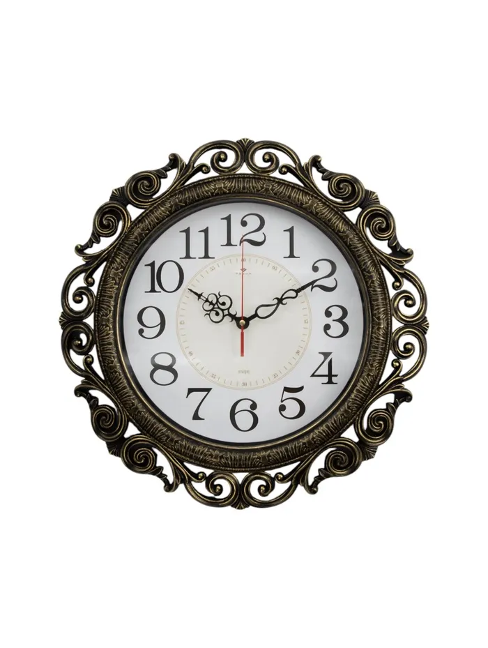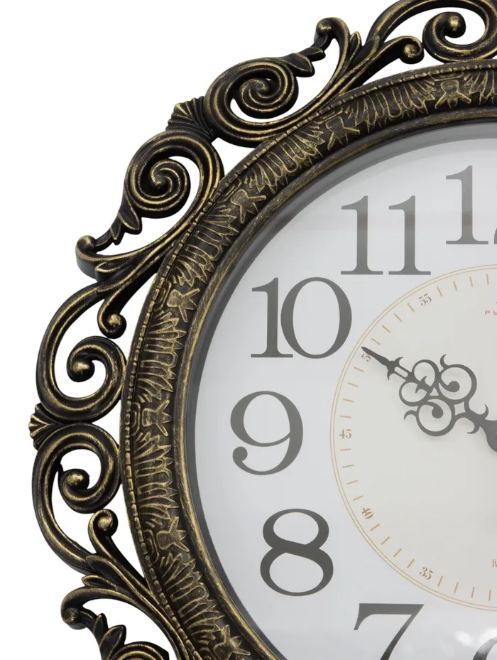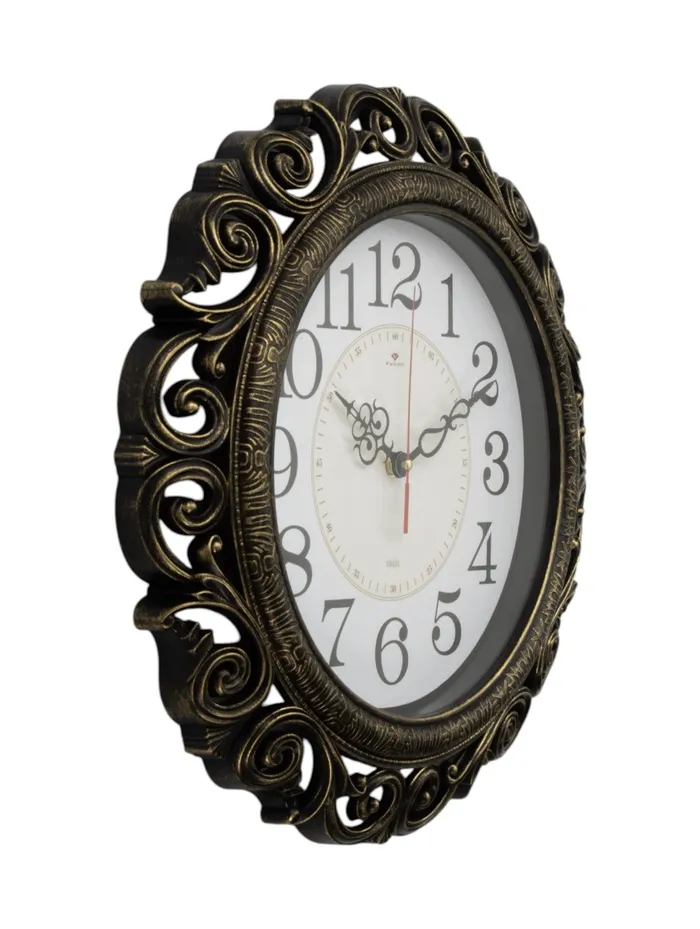 Диаметр корпуса составляет 40,5 см, что позволяет легко читать время со значительного расстояния. Их корпус украшен ажурным узором, который придает часам оригинальный и изысканный вид. Однако, самым важным преимуществом этих интерьерных часов является бесшумный механизм, который обеспечивает равномерный ход стрелок без каких-либо шумов. Это отличное решение для тех, кто ценит тишину в доме и хочет, чтобы звуковые эффекты часов не мешали покою. Кроме того, плавный ход стрелок делает чтение времени еще более легким и удобным.