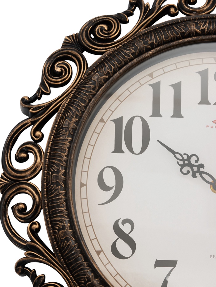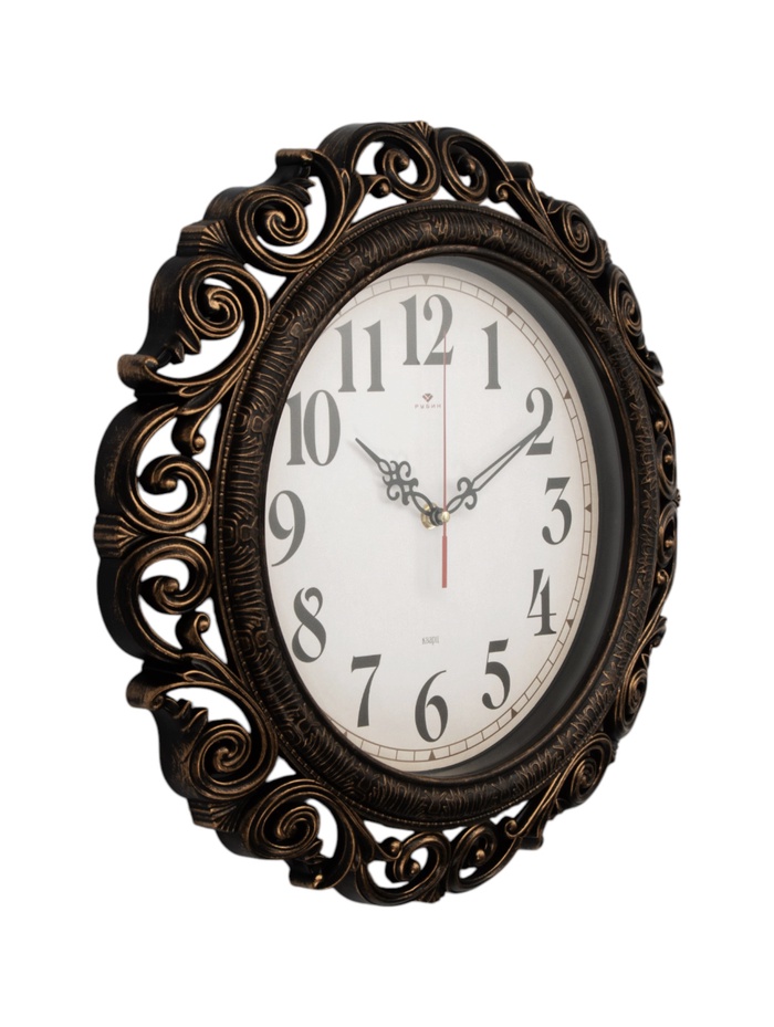 Диаметр корпуса составляет 40,5 см, что позволяет легко читать время со значительного расстояния. Их корпус украшен ажурным узором, который придает часам оригинальный и изысканный вид. Однако, самым важным преимуществом этих интерьерных часов является бесшумный механизм, который обеспечивает равномерный ход стрелок без каких-либо шумов. Это отличное решение для тех, кто ценит тишину в доме и хочет, чтобы звуковые эффекты часов не мешали покою. Кроме того, плавный ход стрелок делает чтение времени еще более легким и удобным.