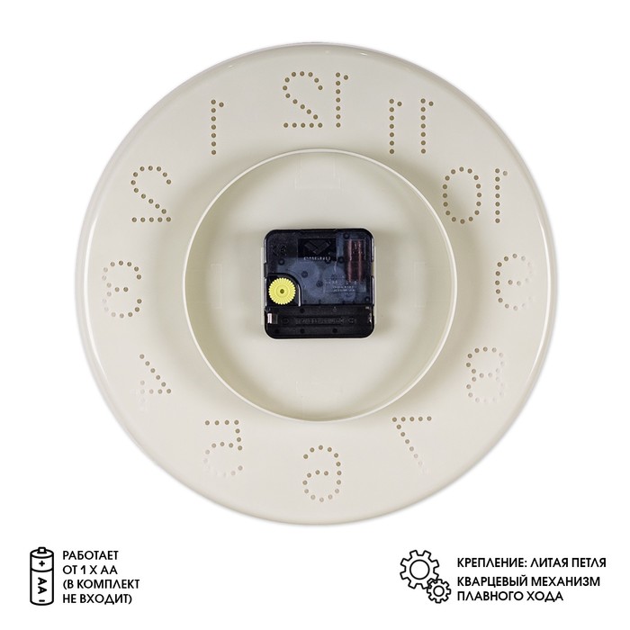 Бесшумные настенные часы - идеальное решение для создания стильного и уютного интерьера. Эти часы настоящая находка для тех, кто ценит качество и неповторимый дизайн. Настенные часы - это не только функциональный предмет, но и настоящий декоративный аксессуар. За счёт необычного дизайна и насыщенного молочного цвета разнообразят интерьер вашего дома.