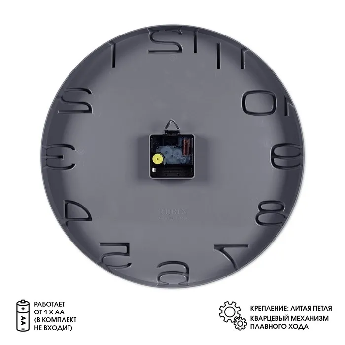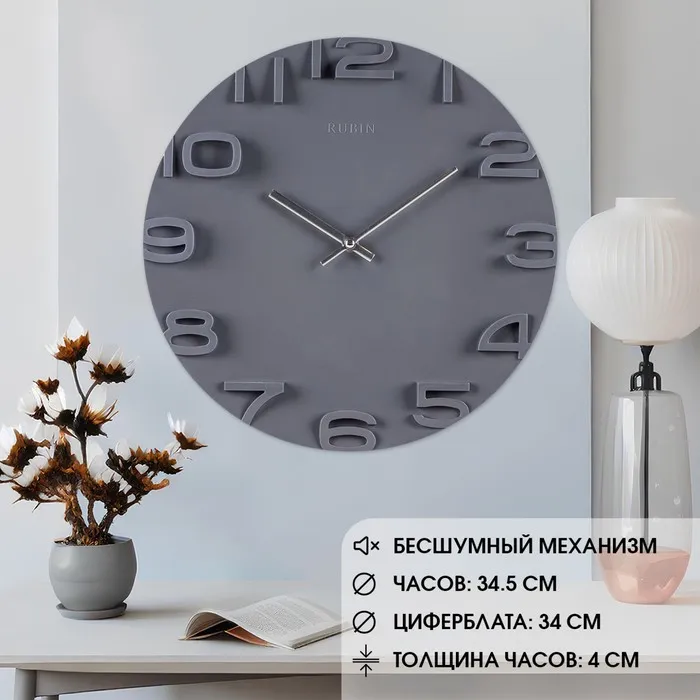 Настенные часы - это не только функциональный предмет интерьера, но и стильный аксессуар, который может подчеркнуть дизайн помещения. Они помогают следить за временем, соблюдать распорядок дня и организовывать свою деятельность. Кроме того, настенные часы могут быть важным элементом декора, который придает комнате завершенный вид. Они могут стать ярким акцентом в интерьере или, наоборот, гармонично вписаться в общий стиль помещения. Часы Классика - это воплощение стиля и качества, созданное специально для тех, кто ценит изысканность и элегантность. Обладают высокой прочностью, долговечностью и устойчивостью к внешним воздействиям. Изготовленные из прочного пластика, они станут настоящим украшением и подчеркнут индивидуальность вашего вкуса. Кварцевый механизм обеспечивает точность хода и гарантирует, что часы будут идти без сбоев на протяжении многих лет. Часы бесшумны, вы не услышите раздражающих звуков из-за отсутствия шумовых эффектов. Питание осуществляется от батарейки типа АА (в комплект не входит). Диаметр часов составляет 34,5 см, что позволяет разместить их в любом удобном месте.