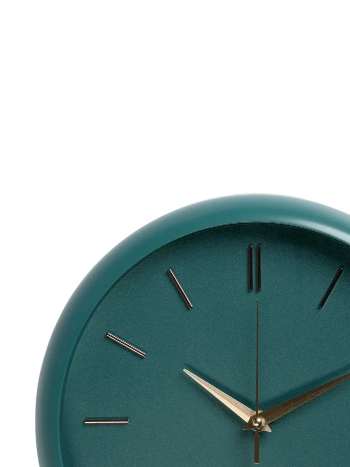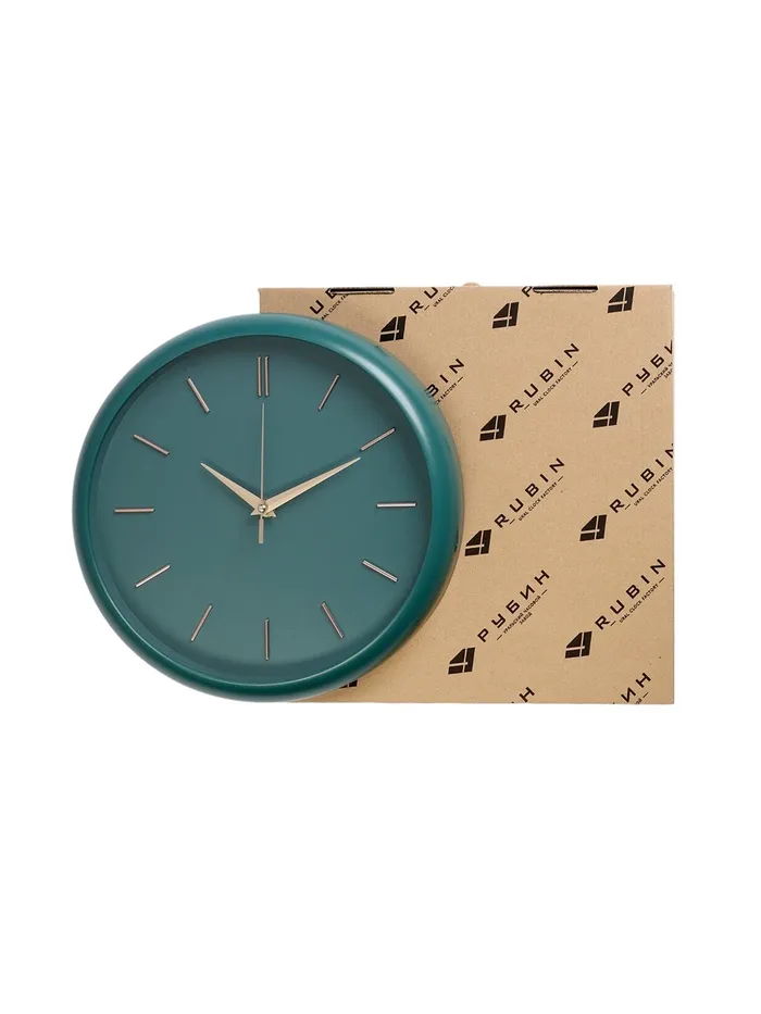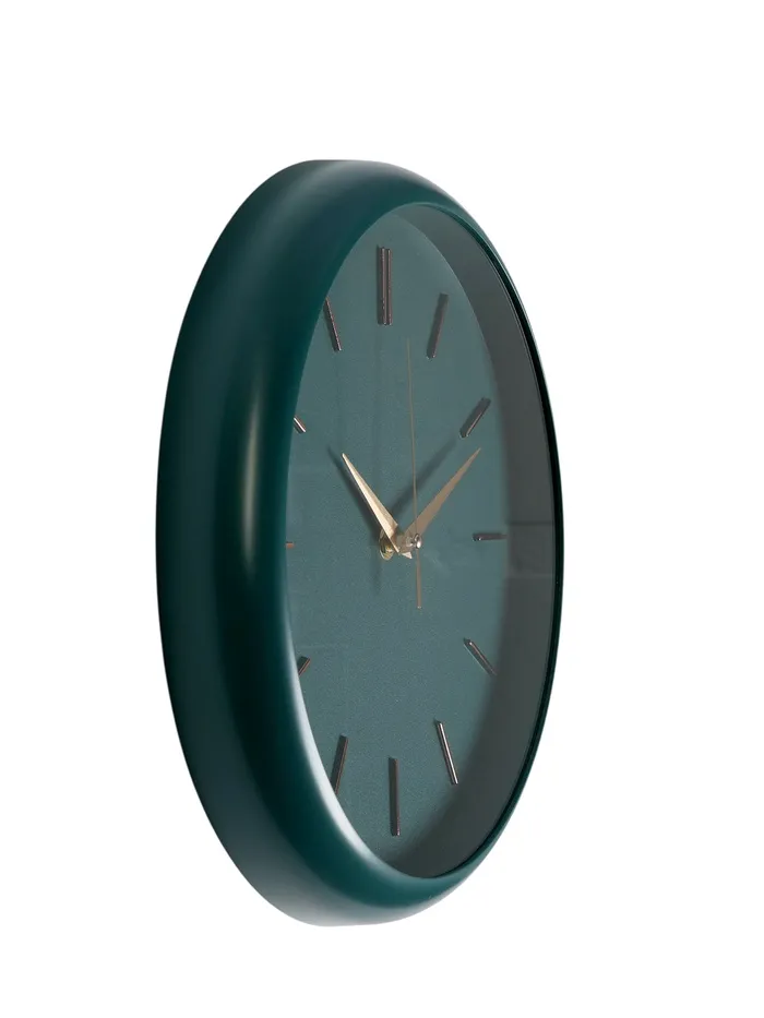 Эти элегантные круглые часы в тёмно-зелёном корпусе — универсальное решение для интерьеров в классическом и современном стиле. Плавный ход стрелок и бесшумный механизм делают их идеальными для спальни, гостиной или кабинета. Римские цифры на белоснежном циферблате добавляют нотку благородной сдержанности, превращая часы в стильный акцент.