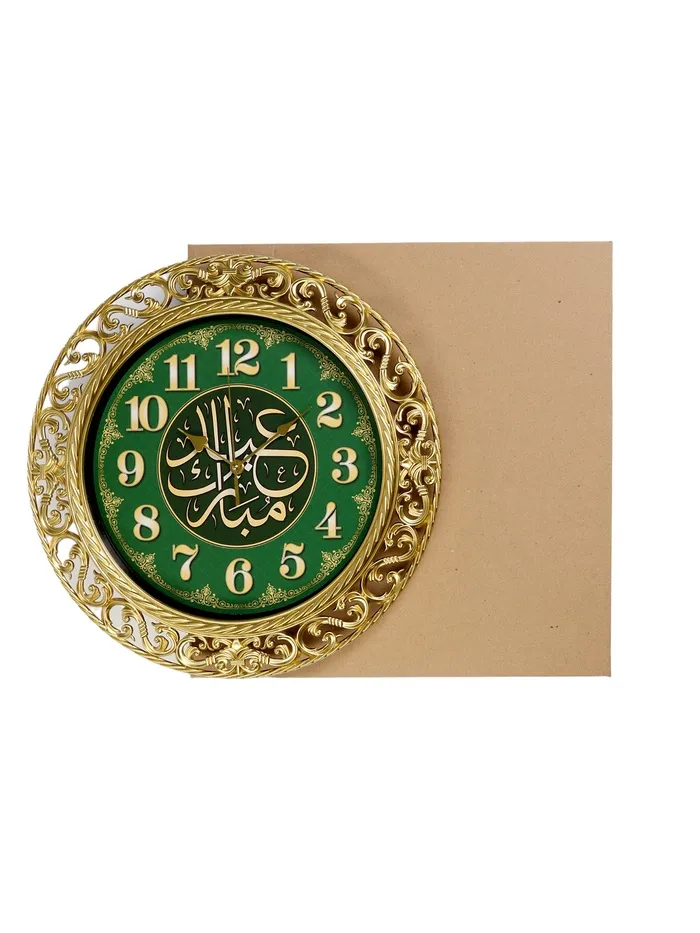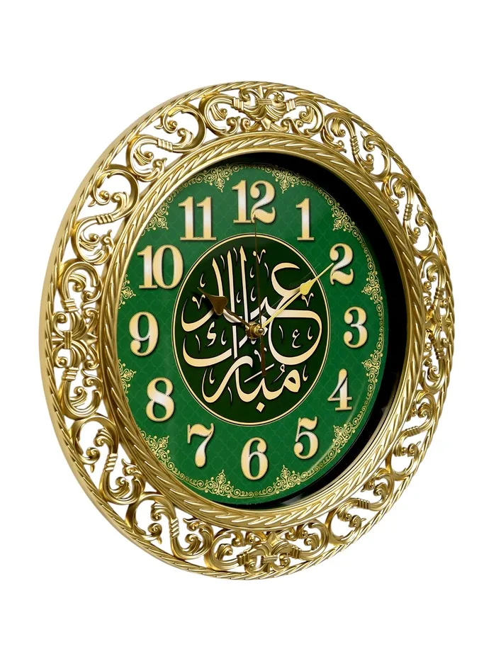 Декоративные часы с золотисто-зелёным циферблатом добавят в интерьер нотку благородной роскоши. Их выразительный дизайн сочетает классическую элегантность и современную функциональность.