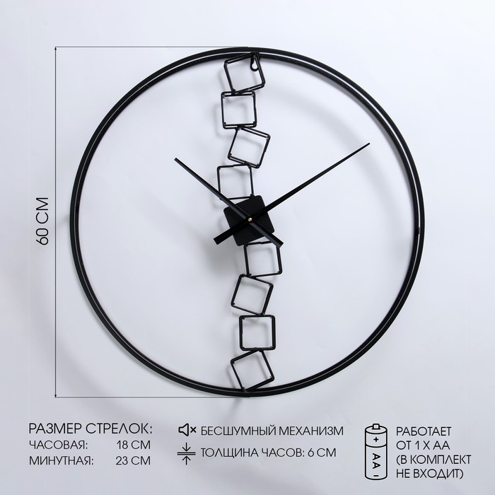 Часы настенные интерьерные, серия: Лофт, бесшумные, плавный ход, d=60 см, от батарейки 1×АА — Характеристики