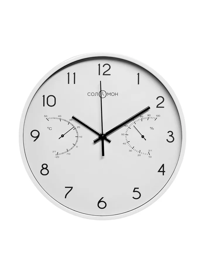 Часы настенные интерьерные «Соломон», плавный ход, d-30 см, термометр, гигрометр, белые — Характеристики
