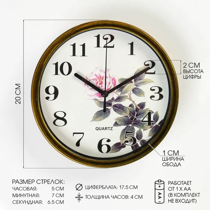 Часы настенные круглые для декора - это уникальное украшение для вашего дома. Они не только показывают время, но и служат прекрасным акцентом в интерьере. Красочный дизайн часов создаст атмосферу уюта и гармонии в любом помещении. Часовой механизм обеспечивает плавный ход стрелок, что позволяет наслаждаться тихими и бесшумными звуками. Никаких щелчков и посторонних звуков, только тикающие стрелки. Установка часов легка и быстра, крепятся они на стену одной точкой. Работают от одной "пальчиковой" батарейки, что обеспечивает долгое время работы без необходимости частой замены батареек.